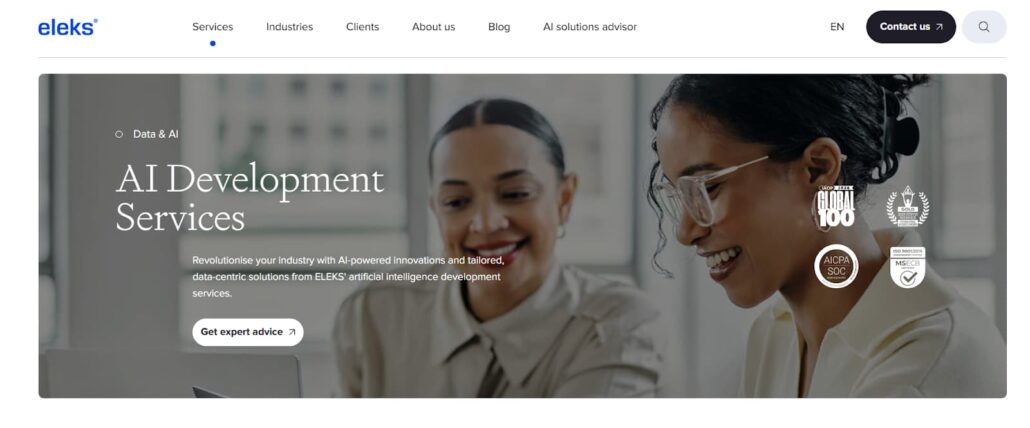 ELEKS is an international software engineering firm that delivers AI development services mainly to enterprises and technology companies. They help clients create data-driven systems by mixing data science with engineering.