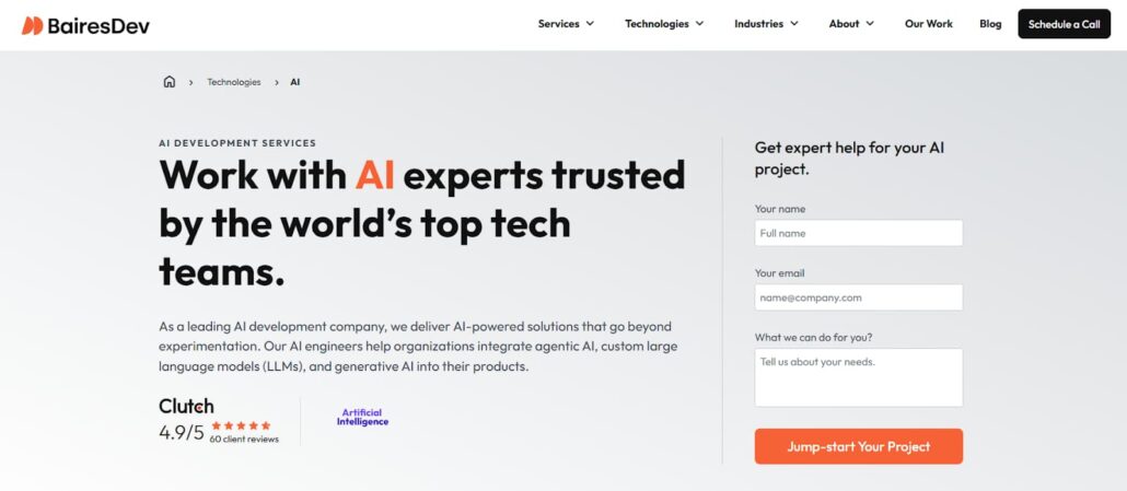 BairesDev is a global software engineering firm known for delivering reliable AI development services. They work with startups to large enterprises, helping them create practical AI solutions.